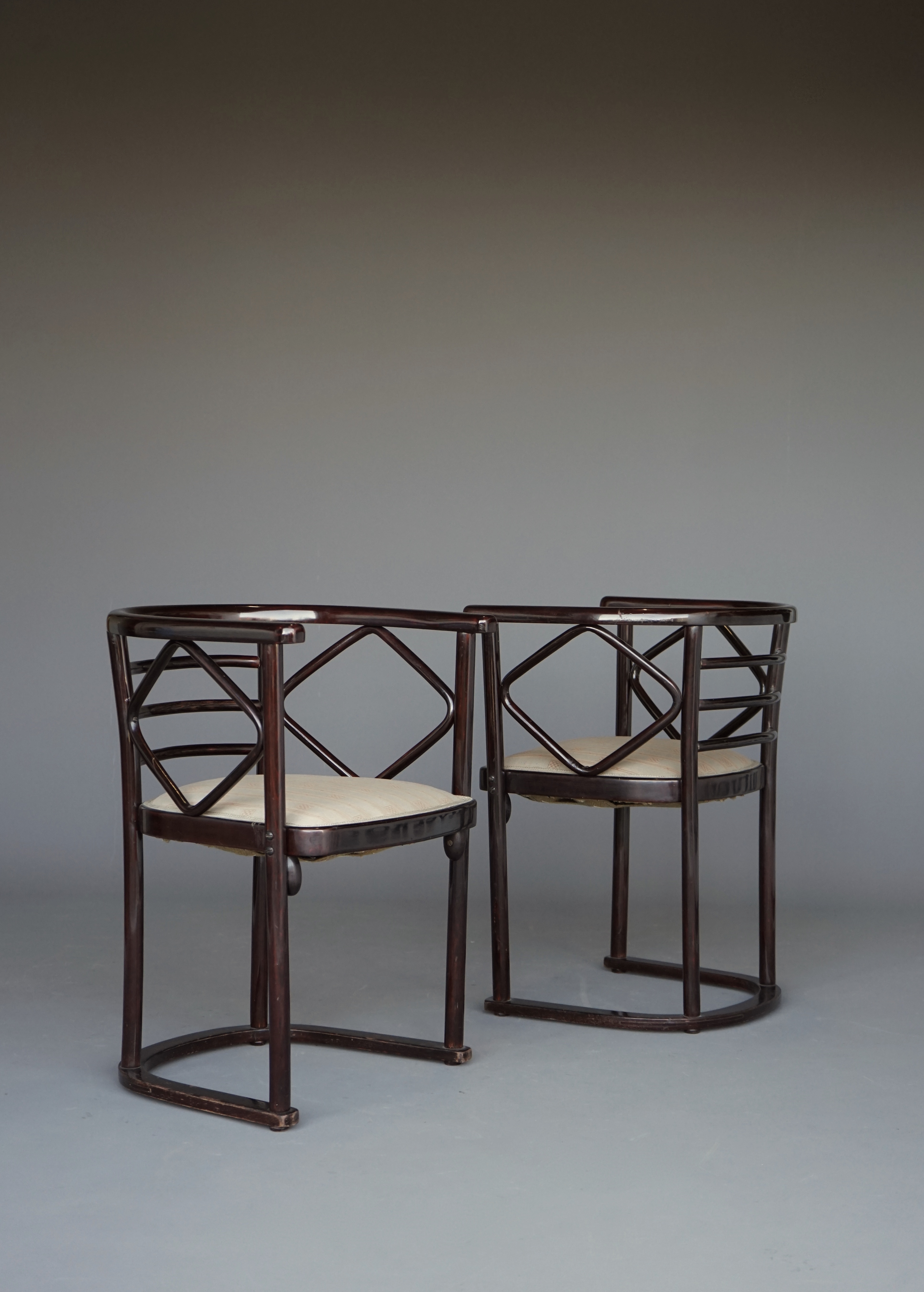 The chairs were originally designed for the famous Fledermaus Cabaret and manufactured by the firm of Jacob and Josef Kohn around 1910. In very nice condition.