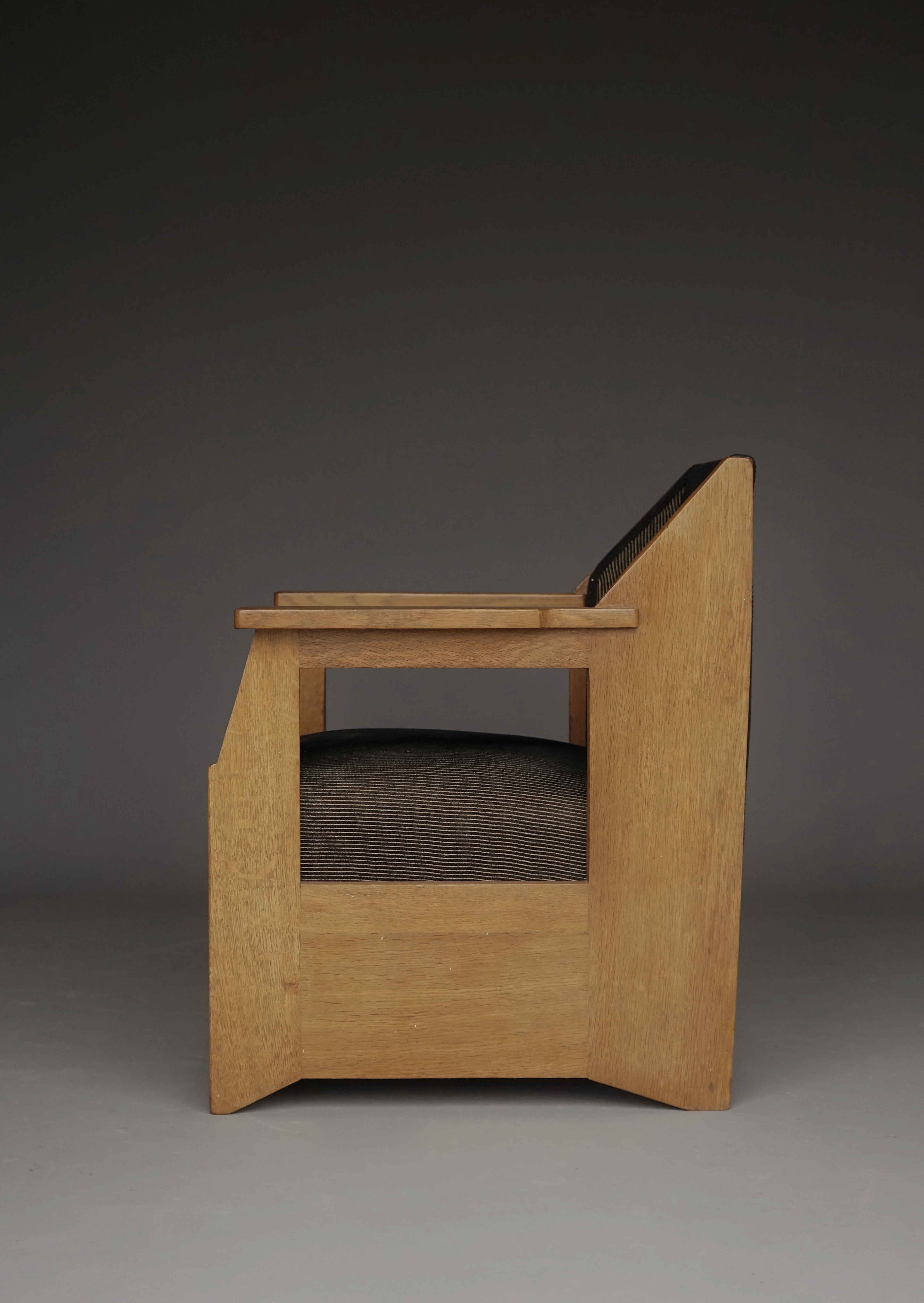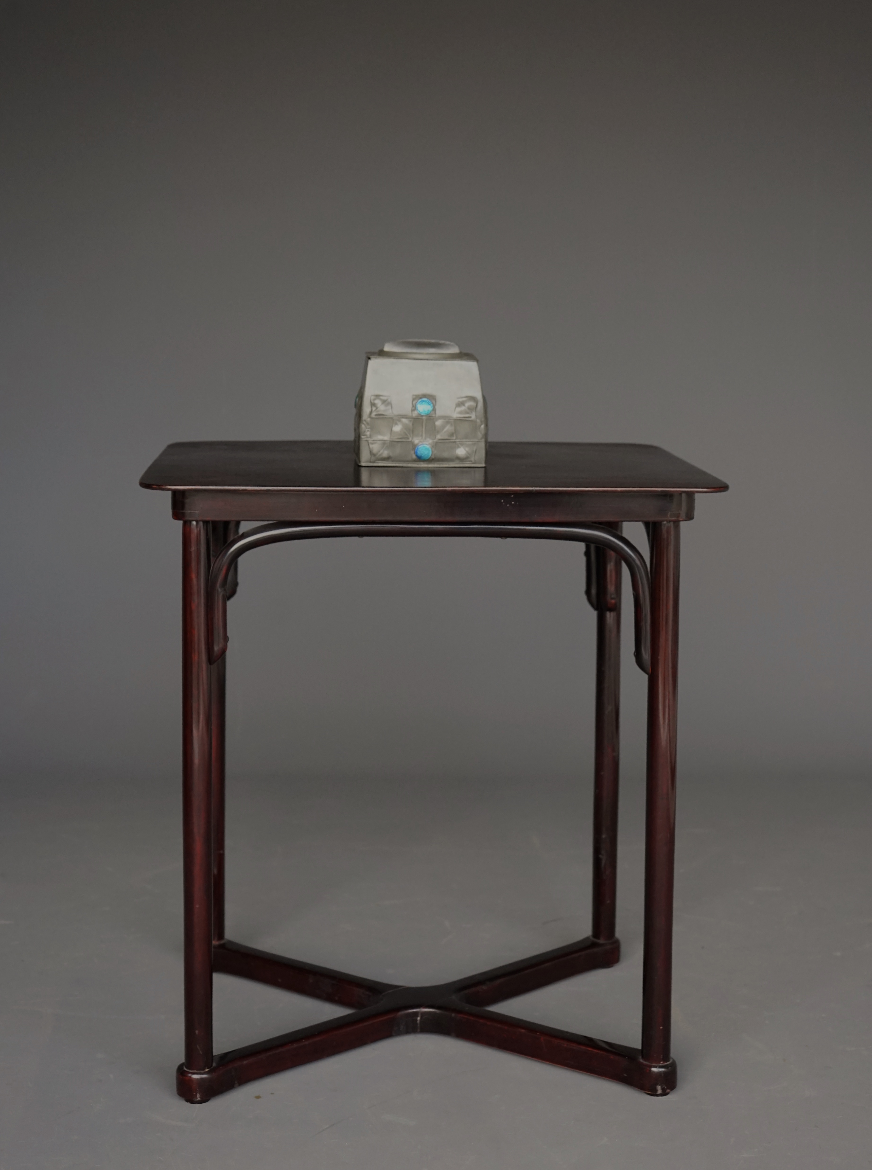 Stained and lacquered beech wood. The chairs have a later Wiener Werkstätte fabric.