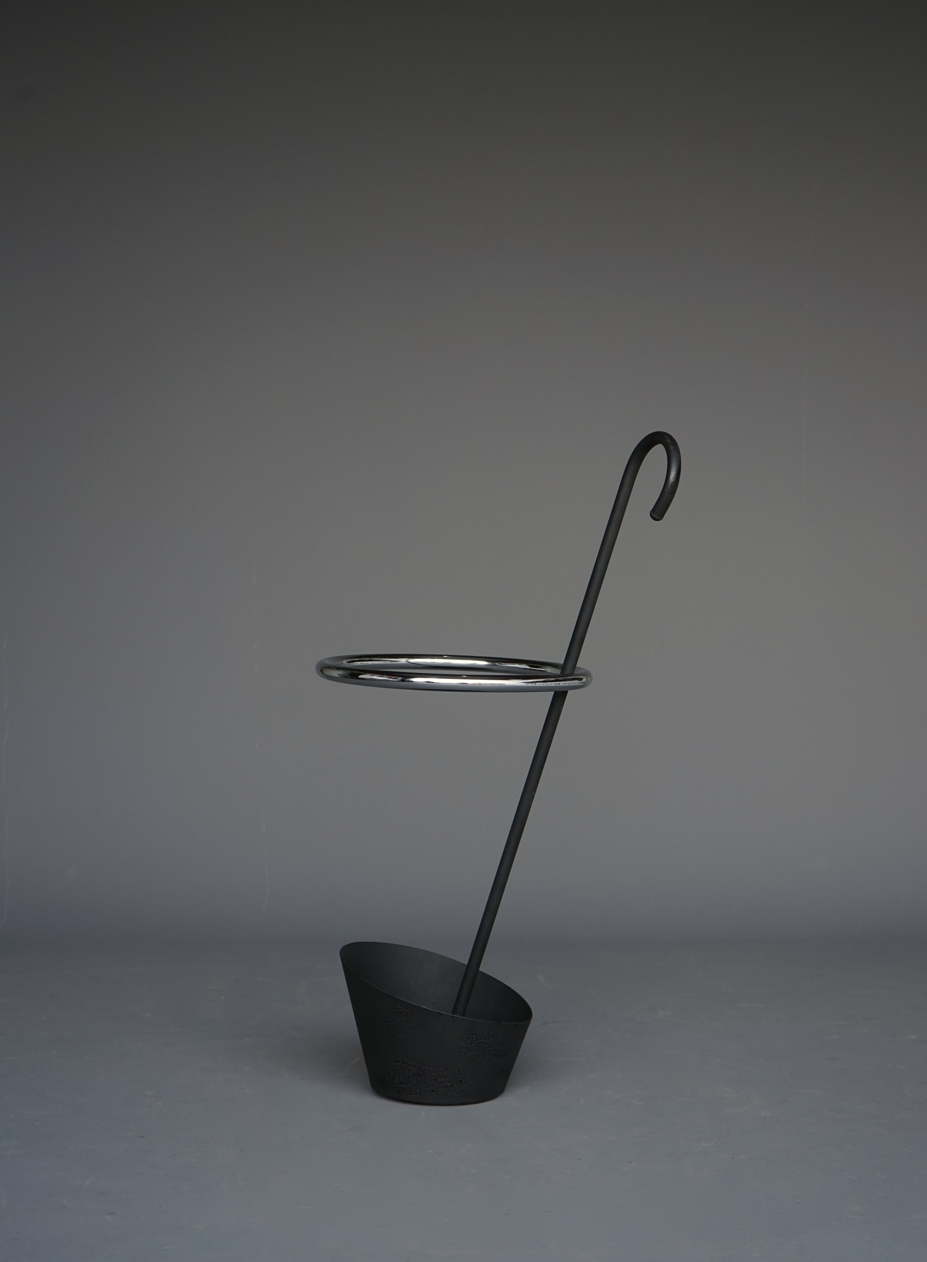 A rare design classic: An umbrella stand designed by Shiro Kuramata for Pastoe in 1986. In a design typical of the Postmodern period it establishes an effective playful synthesis of art and functionality.