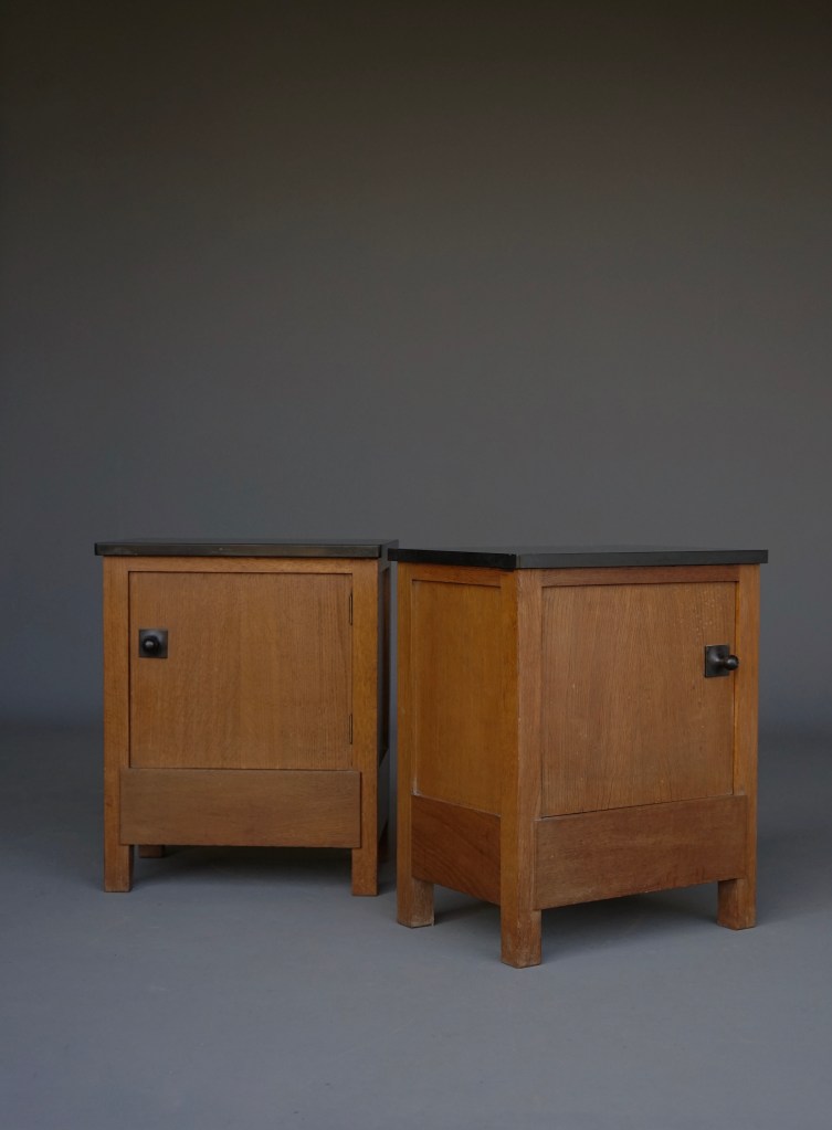 A rare pair of bedside cabinets (or nightstands) by the Dutch architect and furniture designer Henk Wouda (1885-1946).