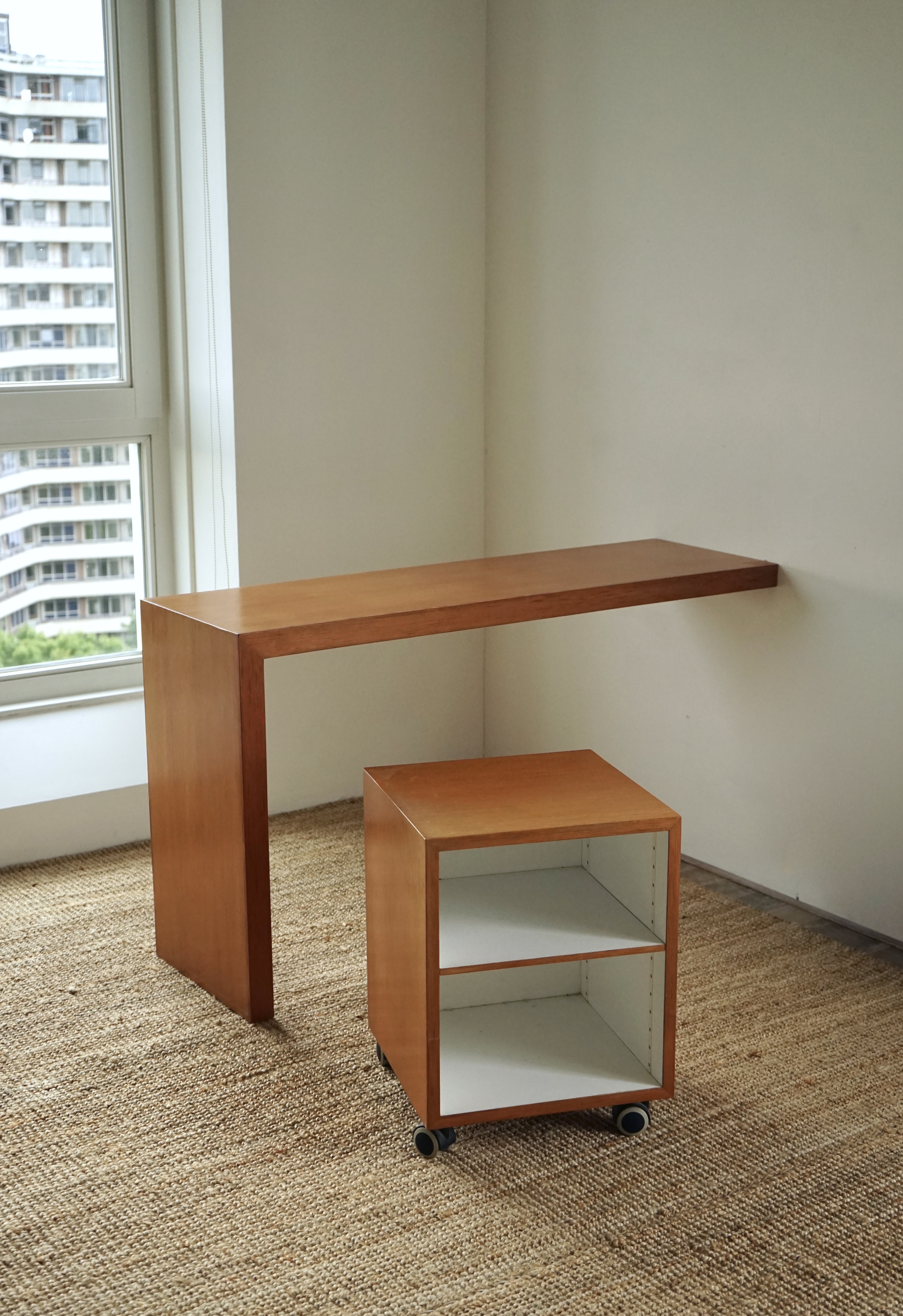 Designed and made to commission for a private residence in Laren, NL in the 1960s (Like much of den Boon’s work this item documented at the Het Nieuwe Instituut, Rotterdam). It was initially designed to work as a vanity unit, although nowadays can be used as a neat little desk.