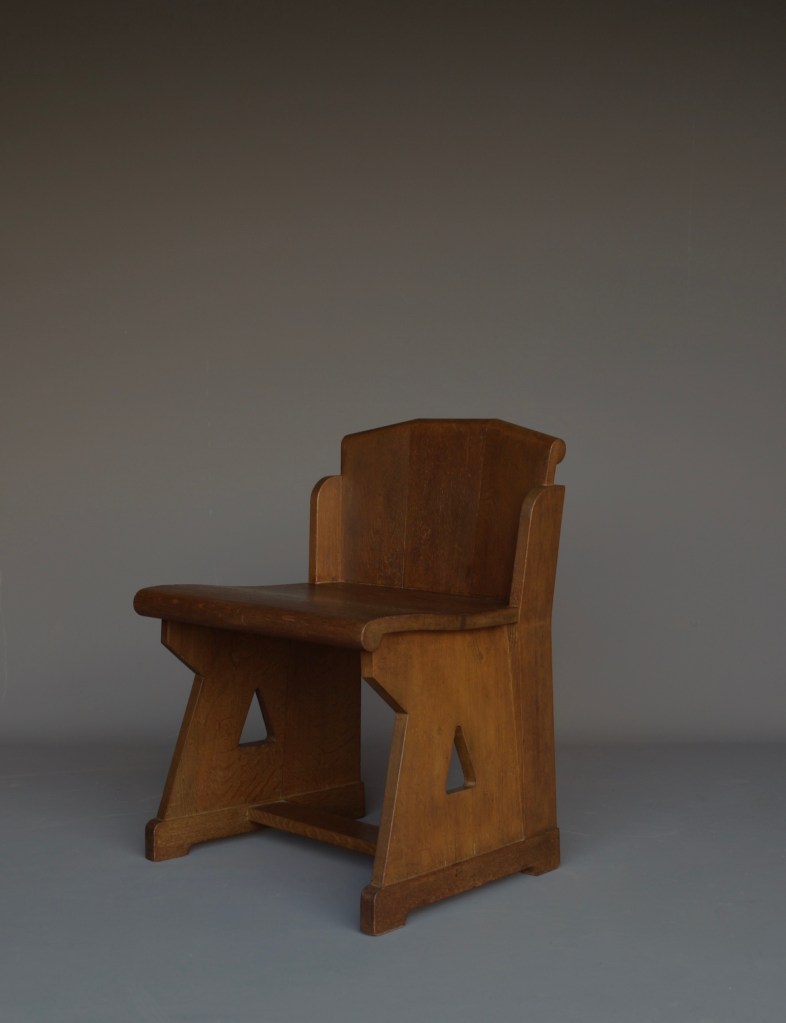 An elegant sculptural side chair made by the famous French duo known for working across a range of specialisms including architecture, sculpture and furniture design. Like many imaginative artist/designers who came to the fore in the 1980s, their work combines elements of Postmodernism to create a narrative object : Gothic, baroque and brutalism combined in a theatrical narrative. This 1970s-80s art-chair would look fabulous in any stylish interior. It has the maker’s brandished marks to the back of the leather seat.