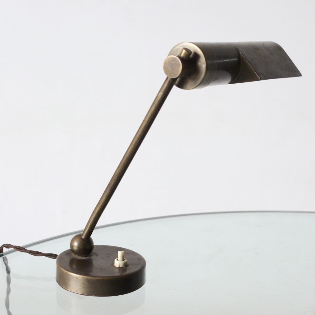 _Originally designed in the 1926, a few limited productions of the design were manufactured in the 1970s. This particular lamp is a very rare 1970s production that was the most faithful to the original series of only 8 lamps that were made. This version has wooden black and white sections (like the original). It has a screwed in metal plate around the two switches (like the original) and a cleaner top edge (without a plastic protector shield that some versions have)