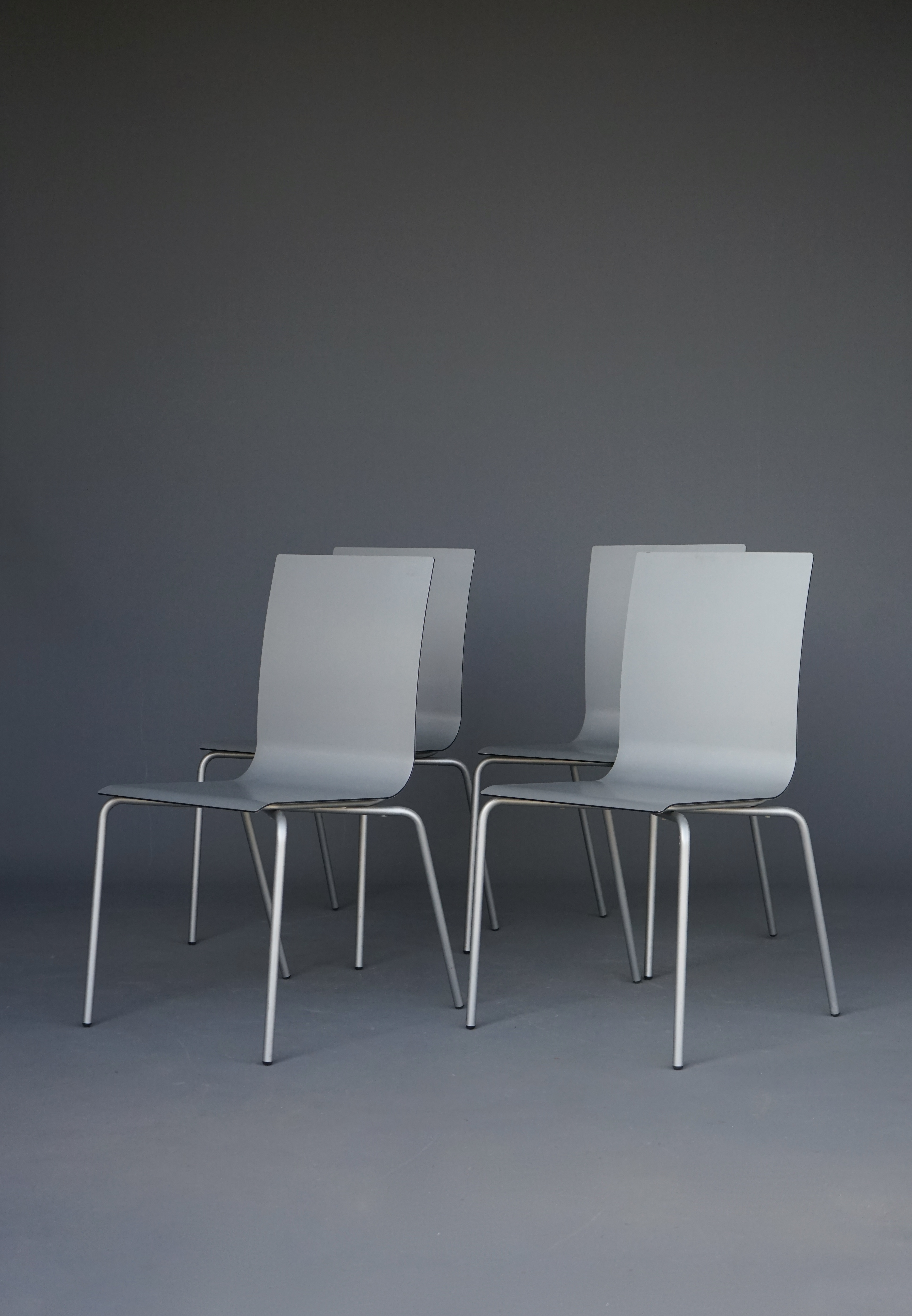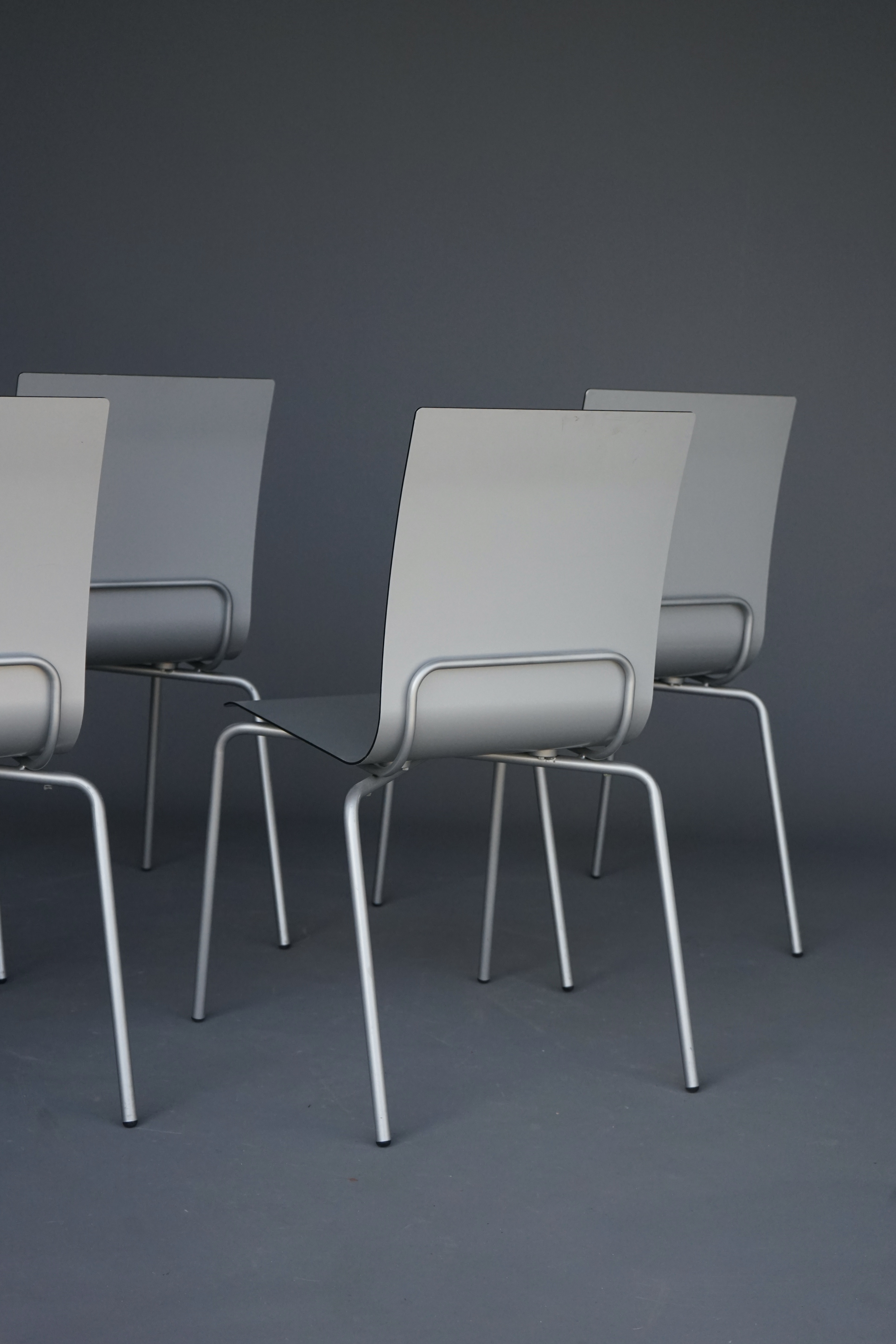 A very rare set of minimalist chairs designed in 2000 by Arik Levy for Ligne Roset. These innovative chairs would have been produced in very limited numbers in the early 2000s and rarely come on to the market for sale. They are made from aluminium tube frames and dibond aluminium sheets for the seats. Examples of the chairs are in the collection of the Centre Pompidou in Paris. Each chair is fully labelled.